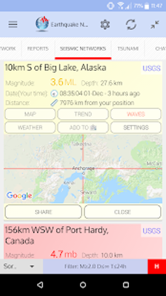 Bu uygulama, deprem bilgilerini bir harita yerleşimi şeklinde gösterecektir. Konumunu ve var olabilecek potansiyel tehlikeleri belirlemek basittir. Bilgilerin sürekli güncellendiğini unutmayın.